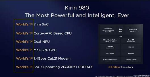 麒麟980处理器怎么样?麒麟980这个“新一代顶级人工智能手机芯片”到底有多厉害,我们来看看下面这些参数,以及前面的Wlord's 1st!没错,这些参数的配置麒麟980都是全球首发或处于领先水平!