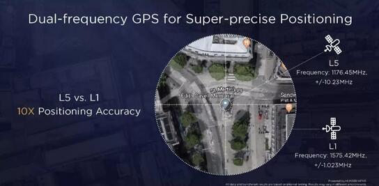 同时支持业界领先的L1+L5双频GPS精准定位,L5频段下定位精度提升10倍,在地形复杂的城市峡谷及高架道路等地区使用地图导航也不怕迷路。