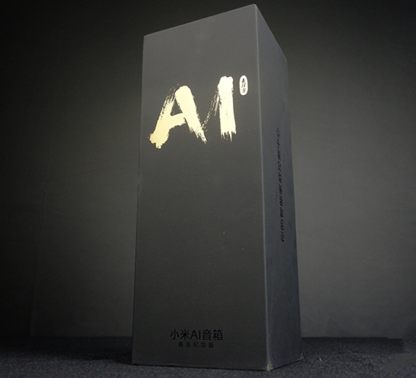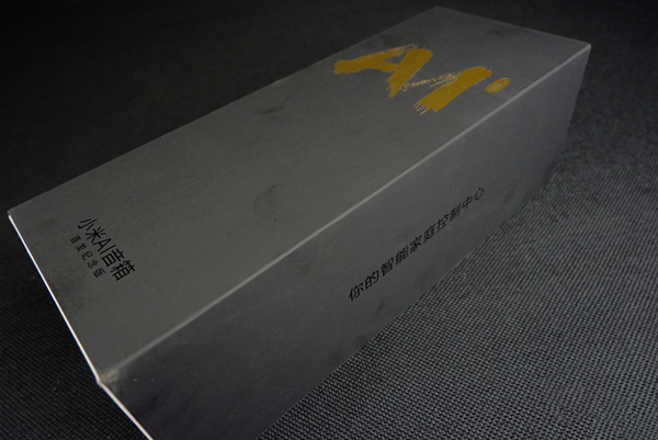 小爱同学的包装盒真的非常大气,中间金黄色的“AI”logo实在是点睛之笔,纯黑色的磨砂包装盒突显出了尊贵的档次气息,满满的科技感。