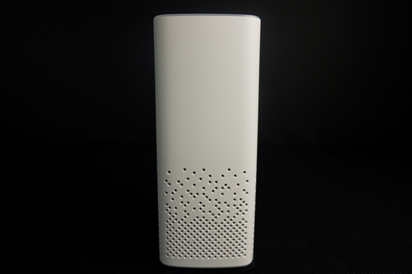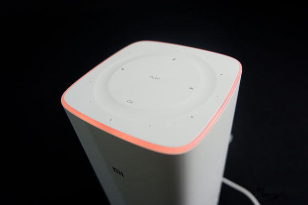 我们可以看到,小爱同学的形状整体类似于小米空气净化器有木有,长方柱体,边角呈弧形,下方是输出单元,光滑的表面也是拿捏在手上特别舒服,正中间的“小米”的标志性logo也是非常醒目。