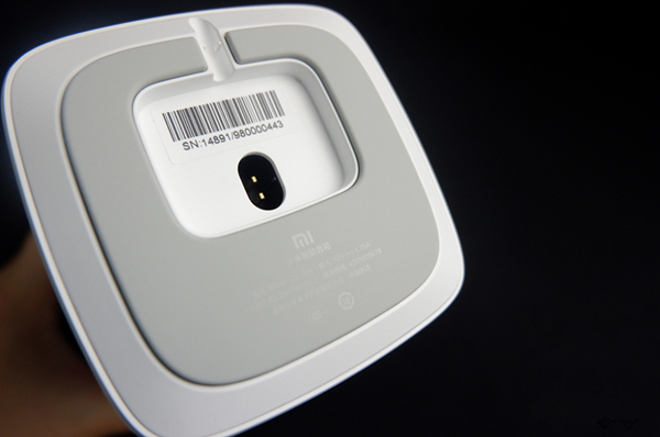 小爱同学的底座是充电孔,也有产品的条形码,还有产品的基本信息等。设计团队也是非常的人性化,将小爱同学的充电孔设计在最下方,为了不影响机身的美观,不会破坏它一贯的“简约不简单”的宗旨,而且充电空边上有个凹槽,可供充电线重叠,充电时也不会害怕机身出现不平衡的情况。