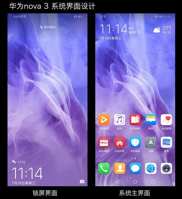 华为Nova3运行基于Android 8.1深度定制的EMUI 8.2系统,在国产系统中,EMUI属于前三的知名系统,相比MIUI和Fyme,并没有内置广告,这点还是很不错的。