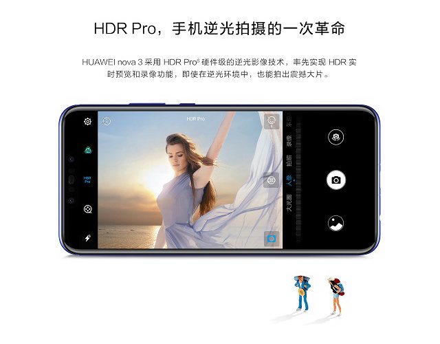 拍照方面:华为Nova3主打拍照,配备前置2400万+200万双摄和后置1600万+2400万双摄像头(F/1.8光圈,自动对焦)组合,前后相机规格都很高,号称有着“海报级自拍体验”并且支持AI拍照,以下是该机拍照上的亮点介绍。总的来说,就是自拍美颜强大,玩法丰富等。