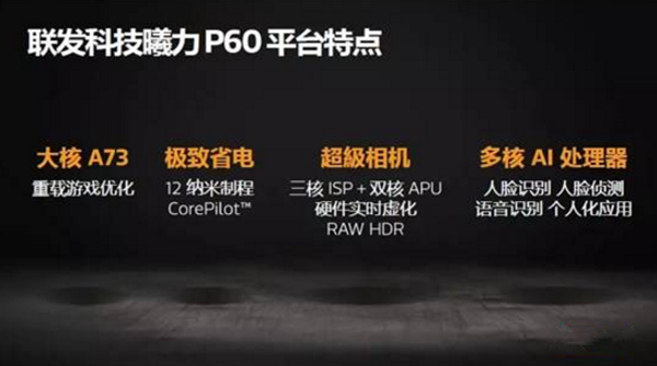 诺基亚x5是什么处理器?诺基亚x5搭载的是联发科P60处理器,这款处理器是联发科在今年2月底才发布的处理器,这款处理器相比之前的P系列,亮点在于首次采用A73核心构架,同时还是引入了AI运算的APU,在诸多方面得到非常大的提升。