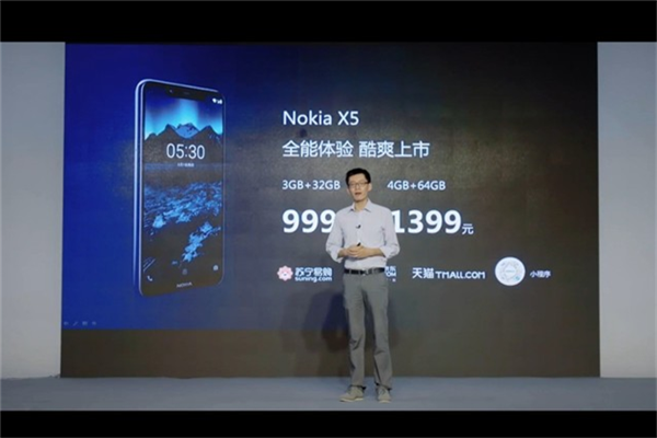诺基亚X5提供了两个版本,分别是3GB+32GB为999元,4GB+64GB为1399元。