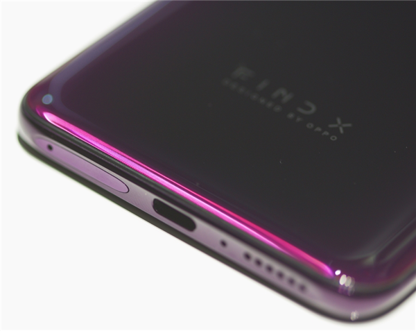 从接口可以看到,Find X采用了TYPE-C接口,这也是OPPO首款使用这种接口的手机,多年以来被媒体问得最多的疑惑终于在Find X身上得到了回应。这次Find X因为内部结构实在过于紧凑的问题,没有常见的3.5mm音频接口,不过会通过随包装附送转接口来解决这个问题。