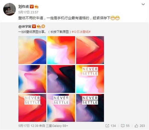 昨日晚间,刘作虎转发网友分享的一加6壁纸,并声称“壁纸不用吹牛逼,一定是手机行业最有逼格的,赶紧保存下。”看到这几张壁纸,一加6的原创壁纸很是让人惊喜。