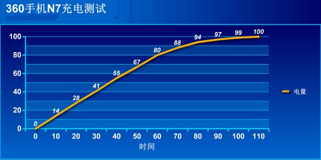 充电测试:360手机N7内置5030mAH容量电池,且支持QC3.0 18W快充,通过充电测试不难看出,充电10分钟能充进14%的电量,将电池充满需要1个小时40分钟,充电速度还是相当不错的。