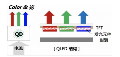 QLED 产品竞争力不够QLED是不需要额外光源的自发光技术。其中量子点是一些肉眼无法看到的、极其微小的半导体纳米晶体。目前市场上的QLED产品都是采用不同尺寸的量子点,在蓝色LED的照射下发出红、绿、蓝三色光。目前 QLED有两种应用,一种是通过蓝色LED照射发光,这种是背光应用。另外一种是直接通过电流激发量子点材料发光,应用这种原理直接制作成自主发光的面板。(下文中的优缺点主要针对QLED面板应用)