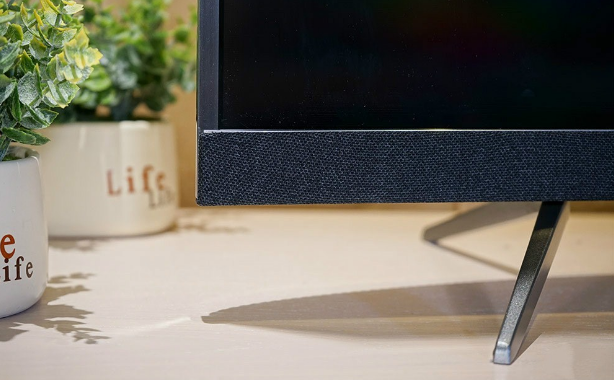 无缝一体成型的中框,令电视的轮廓在任何角度的视觉上,都利落有型。底部Dim Gray暗石灰音响布面设计,经典而又强调,让家居设计不流于世俗。