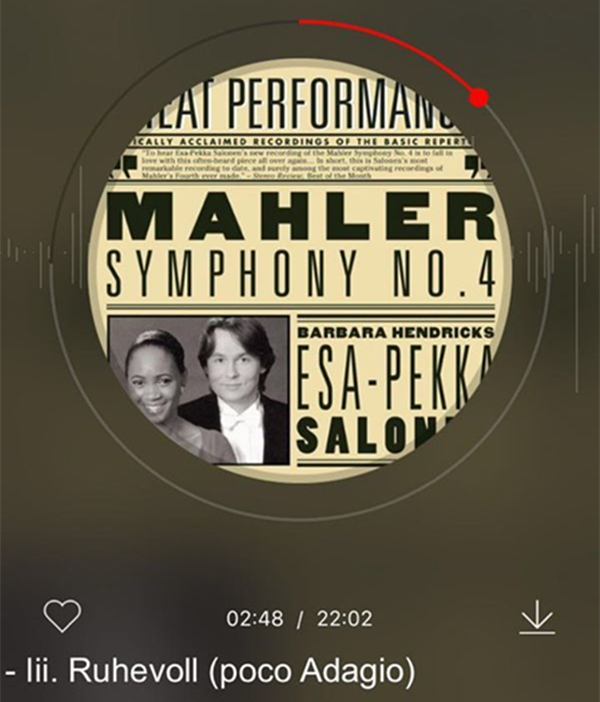 最后的测评有些苛刻了,那就是古典音乐。这里放上本人比较喜欢的马勒第四交响曲。用这个耳机听古典音乐的朋友应该不多,总得来说也是延续了之前的感觉,那就是线条清晰,背景干净,但是由于频率响应和蓝牙音频的带宽原因,整体效果并没有“交响”交织在一起的感觉。