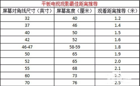 为达到舒适的视觉效果,消费者可根据电视的摆放位置与观看位置的距离来选择电视机的尺寸。一般来说,观看距离在2米以内的,购买32英寸以及下的电视较为适合,2米以上至3米的,可选择37、40、42英寸的电视,距离在3.5米左右可选择46、47英寸的电视,而距离达到4米或以上的就可以考虑50英寸及以上的电视了。