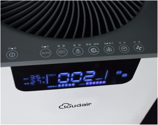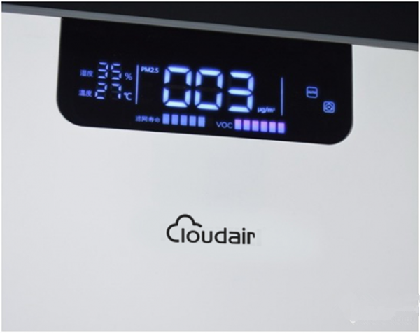 气体是无形的,仅仅是净化还不够,要是能够直观的观察到空气中甲醛含量的变化就更好了,而这一点Cloudair就可以做到。Cloudair空气云空气净化器的大屏上可以显示出当前环境的PM2.5指数、室内温湿度、正在运行的功能,以及室内VOC(空气中有害气体)浓度和滤网使用寿命,空气净化器的运行状态可以说是一目了然。这在当前以PM2.5检测为主的空气净化器行业中可谓是一种绝无仅有的创新。