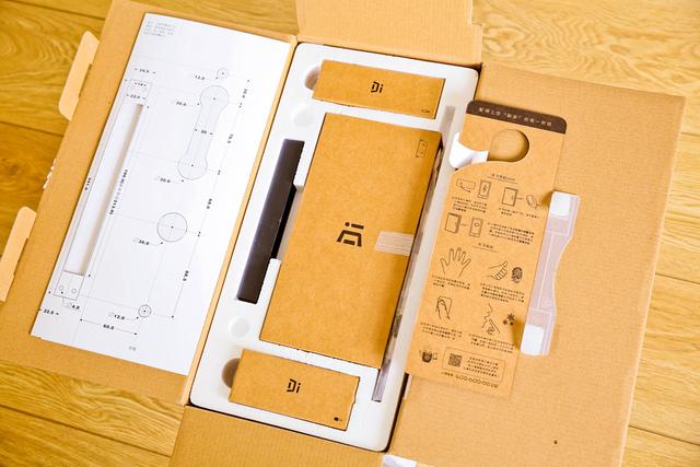 箱内除了错落有致用牛皮环保纸盒装有的锁具配件,还提供了一张锁具安装的结构图。不过小嘀可以免费上门安装,因此对我们来说是没什么用的。