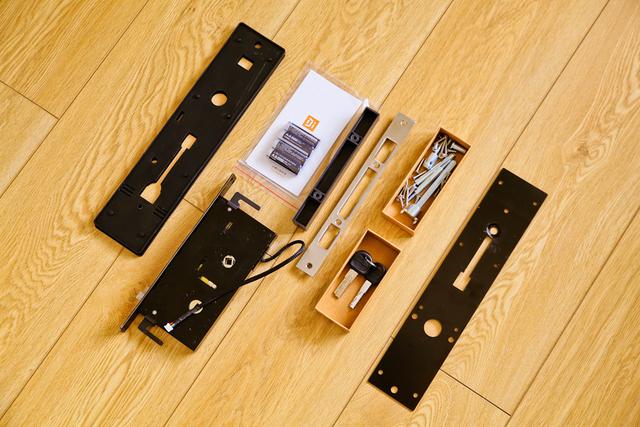 从图中不难看出,整套小嘀T700云智能锁除图纸说明及保修卡册外,还包含了锁体、前后门把、橡胶门把护垫、电池、钥匙、锁舌位金属片、工具螺丝等。