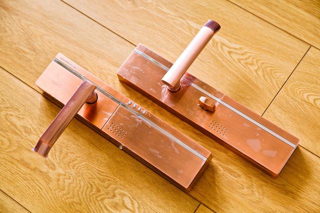 关乎颜值,红古铜色金属电镀拉丝工艺的小嘀云智能锁面板看起来确实很上档次,并且细看会发现拉丝的表面还有晶钻镀膜的保护,相信这种一体成型金属材质的金属面板能经受住岁月蹉跎的考验。