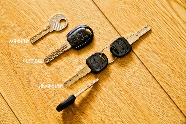 小嘀T700云智能锁采用的是专业防盗等级的超B级锁芯,智能粉将普通锁钥匙、B级锁钥匙与这套打开超B级锁的钥匙做了个对比,是不是这款锁芯看上去明显复杂许多。
