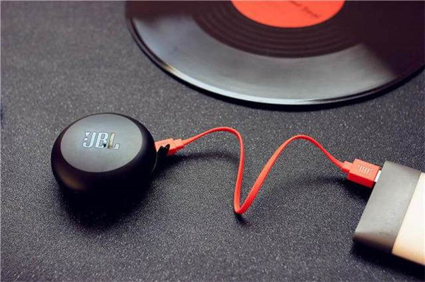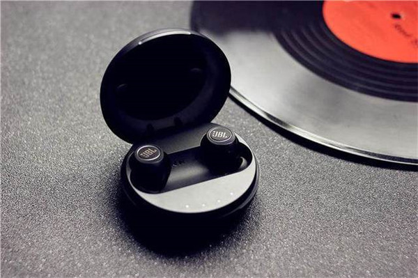 JBL FREE的智能充电保护盒采用圆形造型,翻盖式设计,既可以当充电盒也可以当收纳盒。