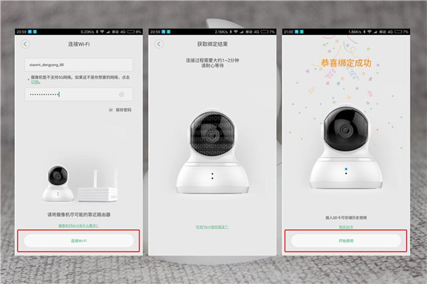 然后就是连接无线WIFI了,在开始绑定摄像机前,手机一定要提前连接好需要绑定的wifi,如果我们手机没有提前连接我们的WIFI,绑定时系统会让我们手动输入WIFI密码,手动输入密码以后,我们就可以更具APP的语音提醒扫描手机中出现的二维码,二维码扫描成功以后那么就要恭喜你,小蚁云台摄像机绑定成功你可以开始使用了。