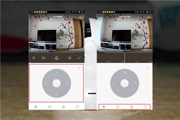 在小蚁云台摄像机的最下方,有一个圆形的操作盘,我们远程超控云台相机就全靠这个操作盘了。在操作盘的最下方,还有4个功能按键,他们分别是隐藏操作盘按键,预设点收藏按键,移动追踪开启按键,和报警消息显示按键,具体每个按键的功能,我会在下面的实际使用环节为大家详细介绍。