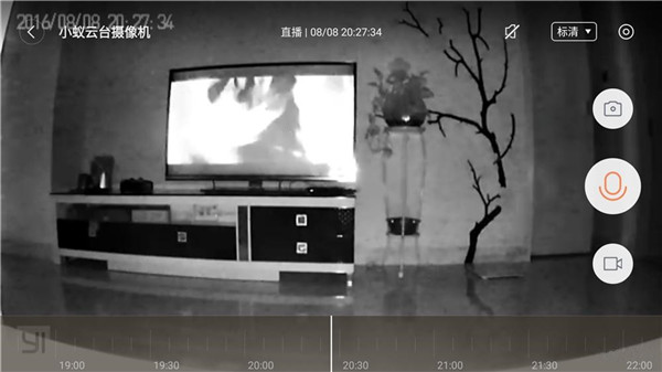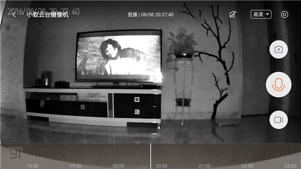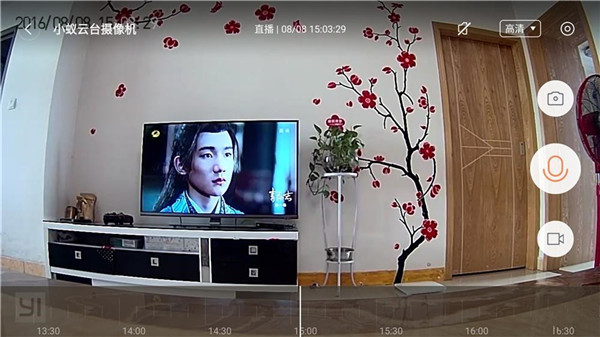 小蚁云台相机的镜头也选用720p全高清镜头,大家可以清楚的看到上面这张图片就是小蚁云台摄像机的高清原图,从画面清晰度来讲小蚁的表现还是让人满意的,图中画面的亮度和色彩与真实环境都比较接近,由于小蚁云台摄像机没有防畸变功能,整个画面还是有些变形,希望以后升级版本能够添加防畸变功能。
