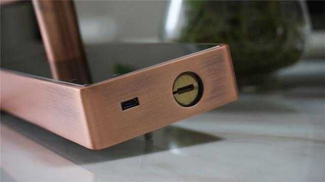 底部设计为USB供电接口与机械锁匙孔(超B级锁芯),值得一提的是锁芯和锁具融为一体,并不像机械锁那样为分体设计,操作方面和普通的没有多大区别。由于采用超B级锁芯,所以几乎不可能用锡纸技术开锁,而用暴力开锁的话也要花费很长的时间。