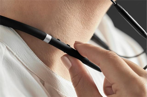外观佩戴Jabra Evolve 75e耳机为挂脖式无线耳机,可让用户在办公中更加自由,摆脱外挂式耳机的沉重感,工作更轻松;