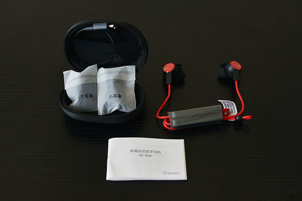 全家福:耳机本体,说明书,收纳包,充电线和大、小耳塞套都是默认放在收纳包里的,用CPE袋包着(中号的耳机套是默认装在耳机上的)。