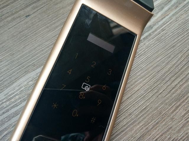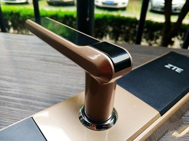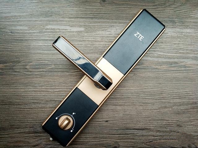 中兴智能门锁有三种颜色可以选择的,笔者选的是金色的,还有古铜色和银色,看个人喜好吧,笔者个人觉得金色的比较高大上些吧,再来看一下中兴智能锁的工艺,官方上说用的是铝合金材质,配备5A级钻石面板,游离把手设计等等工艺。