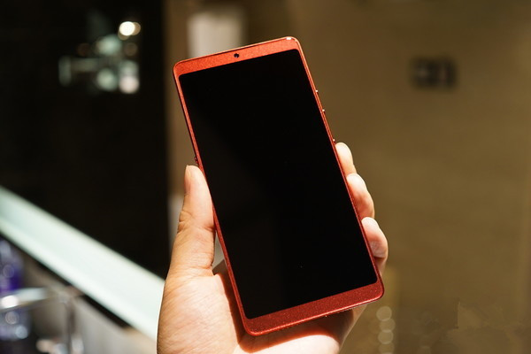 坚果Pro 2机身整体采用双面玻璃+金属中框的典型三明治结构。正面部分采用了目前主流全面屏的设计,正面顶部只有一个前置摄像头开孔,除此之外的听筒、光线/距离传感器以及呼吸灯都被隐藏在了前面板顶部和金属中框的缝隙之中,整体十分美观。背面部分是设计最大的特色,坚果Pro 2采用了后置双摄组合,其中一颗摄像头孔径被做到了和LED补光灯一样的大小,看起来就像单摄像头一样。此外坚果Pro 2的指纹识别模块还和锤子的LOGO巧妙地结合在了一起。