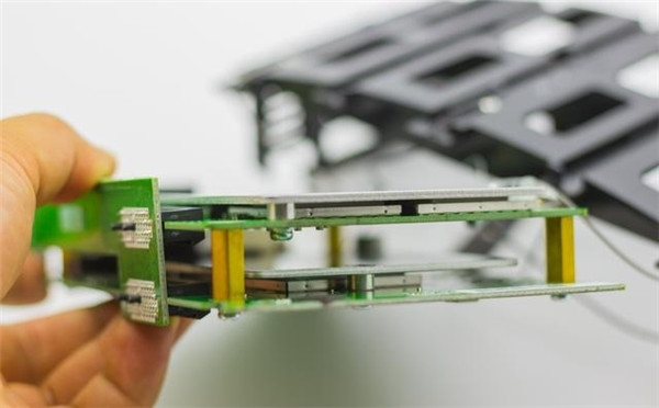 双层式的结构,两层电路板通过底部的一块小板插接在一起。