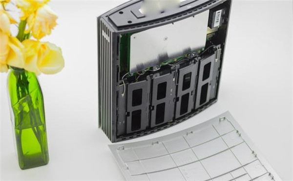 拆掉盖板之后的路由器内部,就是简单的塑料骨架,各种漏风,华丽的外观下,隐藏着一个充满漏洞的内在。