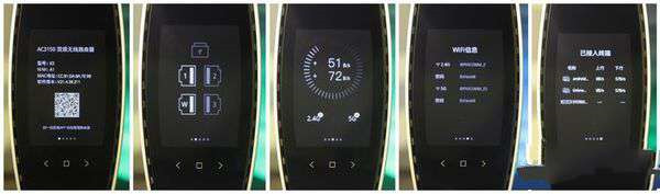 K3的屏幕一共有五分屏,显示内容主要是路由app二维码,接口状态,数据状态,wifi名和密码,以及接入终端状态。