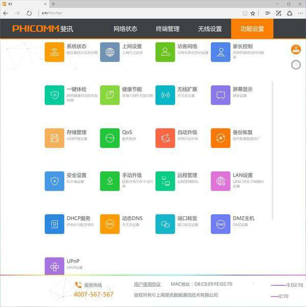 路由器功能设置,图标选用扁平化设计,看起来很直观,一目了然,这设计要点赞。