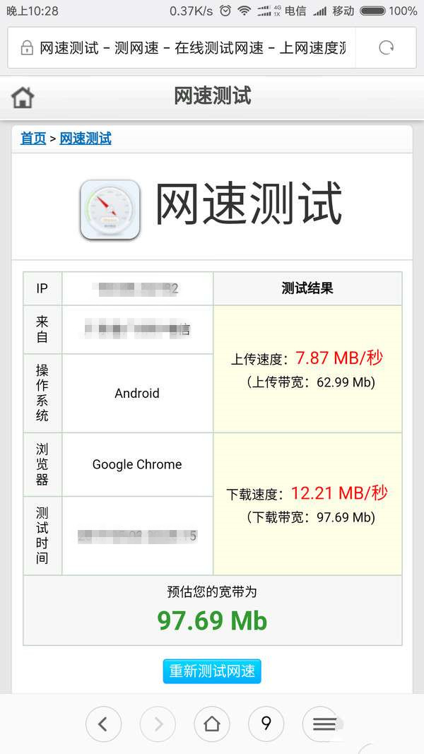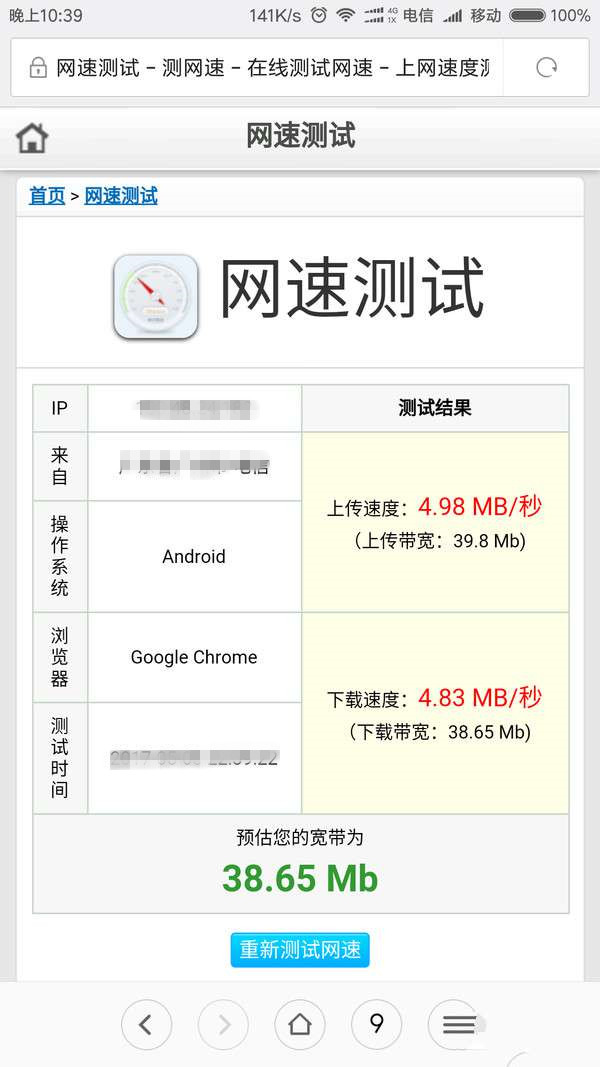 K3有两个频段,分别是2.4G和5G,使用MIX进行无线网络速率测试,结果很明显,2.4G模式下,速度大概是40M,而5G模式下,差不多是100M。