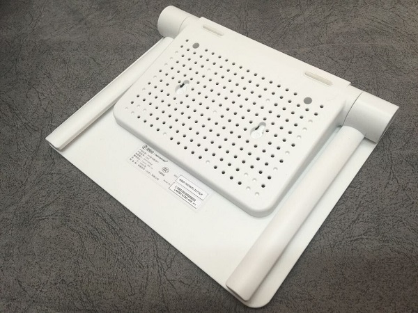 在产品底部,除了散热开口,同样设置有开孔用于在墙面壁挂安放。