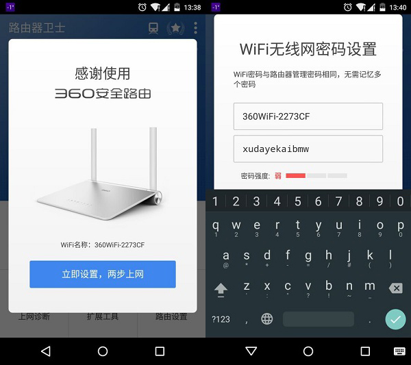 与360安全路由P1相匹配的App直接就称之为“路由器卫士”,在初次使用路由器时,可以直接通过App设置上网方式和密码,无需再动用电脑。