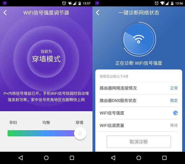而一般的连接设备管理、上网故障诊断、网速测试、信号强度调节同样可以在App端直接完成。