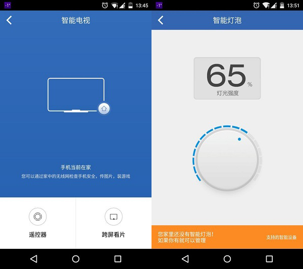 产品最大的新功能在于加入了“99小常识居管理”项目,从App上操作界面我们可以看到,我们可以借助路由器,将手机与智能插座、智能电视、网络盒子、智能手表等终端产品相连,虽然目前支持的产品数量还不是很多,但这显然已经显示着360面向99小常识居领域在产品思路上又迈出了新的一步。