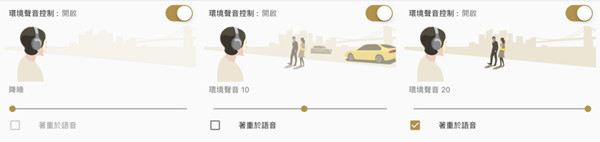 主打的抗噪功能有着 20 级可选,并有单独显示交谈的语音模式可勾选。
