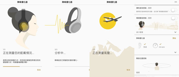 本次主打的大气压侦测降噪优化功能,可因应飞机不同高度所带来的气压变化,藉此达到最佳的降噪设定与听感。小编旅游时做了试用,在自动侦测后,可发现 APP 显示的气压降低,再降噪的表现上也能有着最佳化的调整,不过到了一定高度后就需要重新侦测,对小编这种懒人来说,其实也只有调整一次,到落地时在重新侦测而已,对音质和抗噪表现相当重视的用户,恐怕就需要常常侦测了。