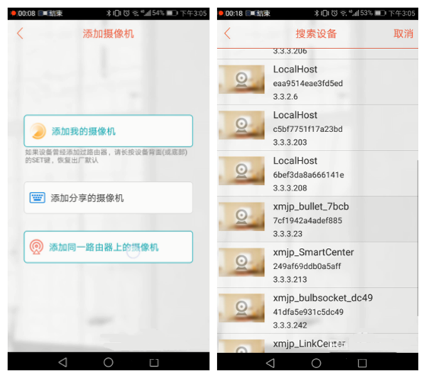 连接方式二:通过“添加同一路由器上的摄像机”来添加设备。