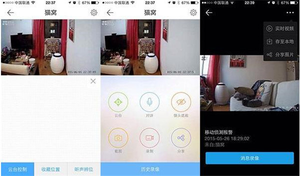 收藏位置功能倒是很好用,可以指定几个经常要查看的位置,比如猫窝、猫饭盆和窗户,时不时打开检查一下这几个位置,就不用每次都手动调整摄像头了。