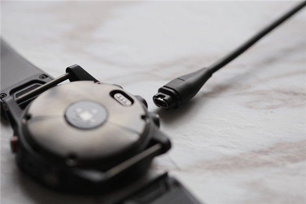 Fenix 5X 专门配备了特殊的充电线,接口呈腰圆形,可别弄丢咯