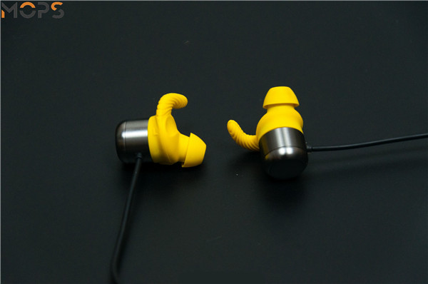 ①MOPS无线心率运动耳机的外观设计个人感觉很有特色,辨识度颇高。同时对于运动耳机的细节如腔体后壳和鱼鳍部的螺纹都能够很好的体现。