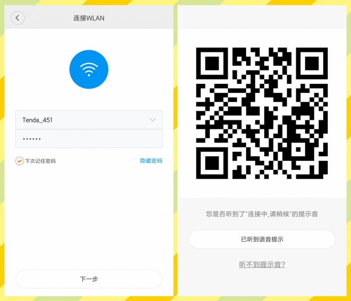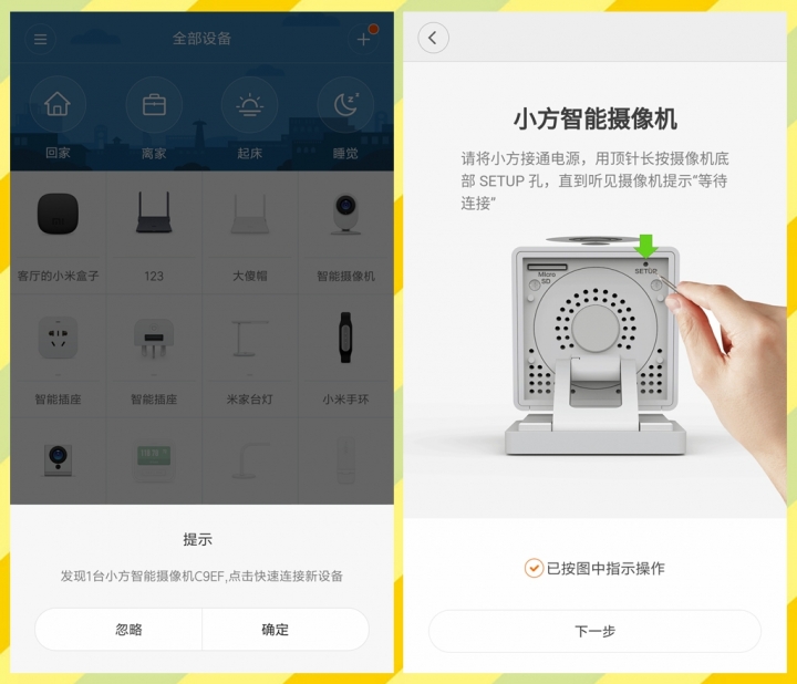 连接小方很容易,操作步骤和其他小米摄像机产品一样,搜索——输入密码——二维码——连接成功