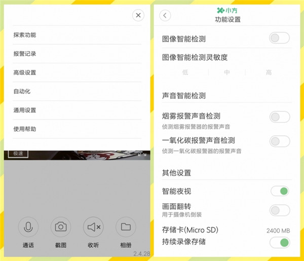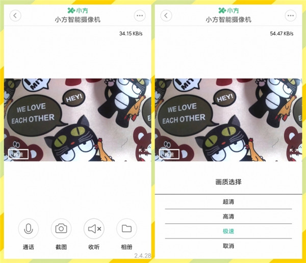 目前小方功能算完全,能够保证日常基本使用。因为小方支持1080P录制,所以在画面清晰度上我们可以调节至超清,保证我们对高画面的需求。关于双向双工语音通话呢,目前还没有上线,不过已经在功能排期上预计在12月底能够正式上线,届时等待米家APP更新即可。