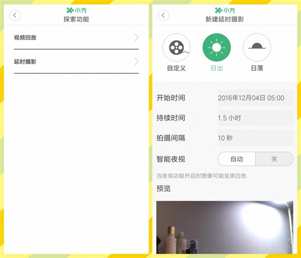 延时摄影、录像回放这个是必不可少的一项功能。其中延时摄影是一项能够增加我们生活趣味的功能,拍日落、拍车流、拍天空等等,也许你就拍出了大片。在使用中,录像回放的时间条并不是很好,很容易跳转刚刚滑到过的时间段,建议更改形式。