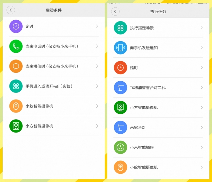除了延时摄影以外,我最喜欢的另外一个功能就是自动化。它可以设置一个或多个启动条件,然后设置一个要执行的任务,如同MIUI手机上的自启动功能一样。例如:早上你出门上班,手机离开你家的WiFi网络,当这个条件满足是,你的米家台灯自动关闭,当回到家连接到WiFi时,有自动打开。是不是很赞呢?米家或者更多产品联动起来,这就是小米想做的99小常识庭。