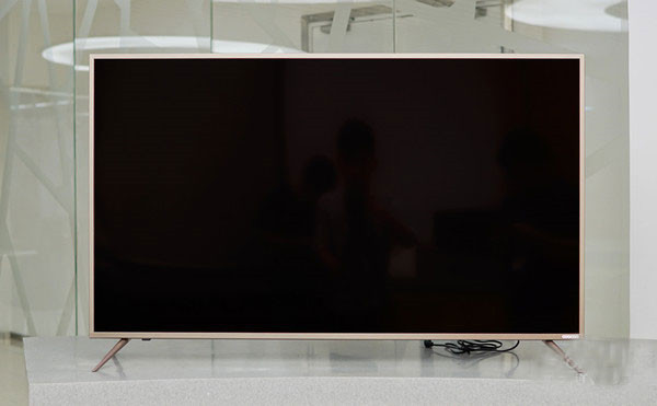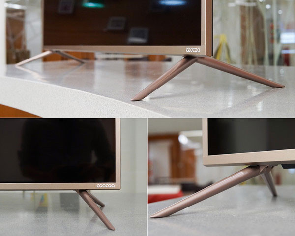 酷开5S 55吋电视延续了酷开对电视简约、时尚,并以试听享受为主导的设计理念。正面采用视觉无边框的设计,整机棱角分明坚固扎实。金色的金属机身营造出现代家居的独特韵味。